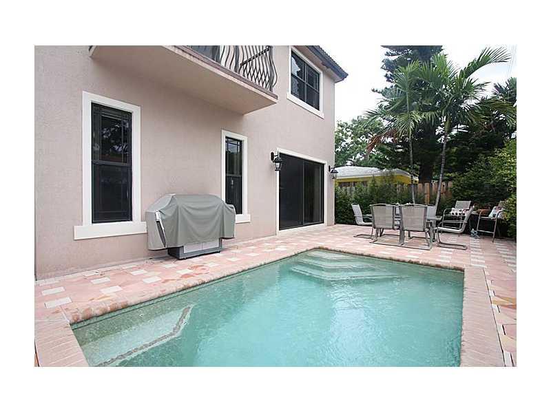 NO HOA FEES in this 2008 luxury TH, with 2 car garage, Private pool and patio, perfect for entertaining, large open concept, huge kitchen, Italian cabinets and vanities, SS appliances (brand new fridge) / granite, upscale finishes, Spanish concrete roof t ile, impact windows, pavers in driveway, ample parking, alarm system, huge master w/2 walk-in closet, double sinks in Mbath,jacuzzi tub & shower,W/D on Bedroom level. Lush landscaping, new sprinklers, new patio pavers, Impeccable! Only 2 units in bldg!