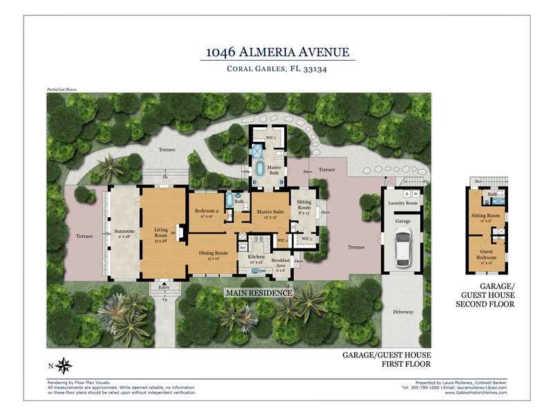 Elegant, turn-key 1920's Spanish style villa with a 2 bedroom 2 bath main house plus a separate 1/1 guest cottage above the one car garage. 10,000 + sq.ft. corner lot. (Front door is on Cordova, not Almeria) Total of 2716 sq. ft. Originally designed by fa med architect, Walter DeGarmo. High ceilings, original Dade County pine floors, large dining room, master bedroom has great closet space and a large new master bath with impact windows & doors. One block to Salvadore Park, couple blocks to Biltmore Hotel