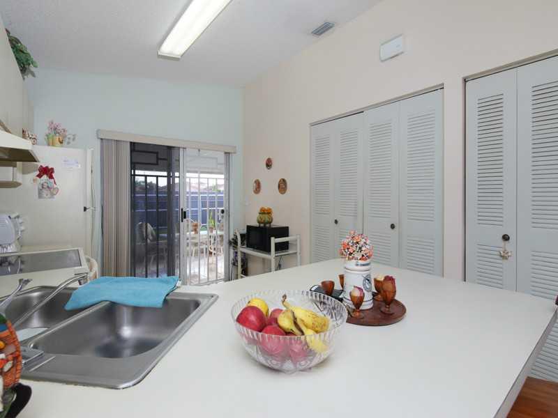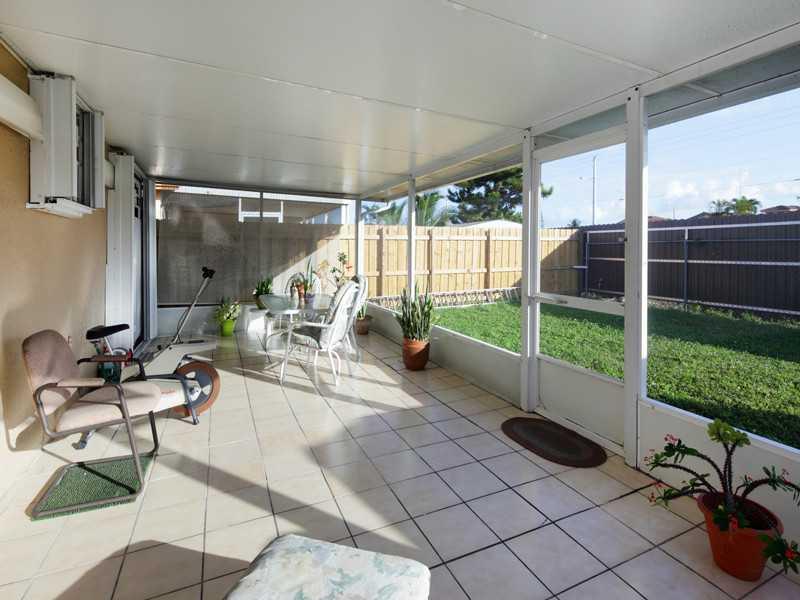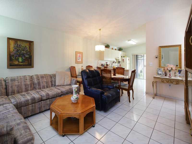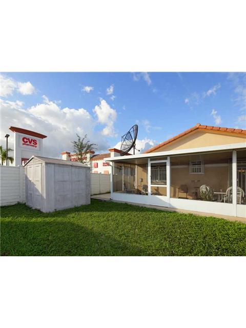 Beautiful one story townhouse, corner unit on dead end street with fenced back yard, covered screen patio, all tile, 3 parking spaces and accordion shutters on all windows. Located in west Hialeah.