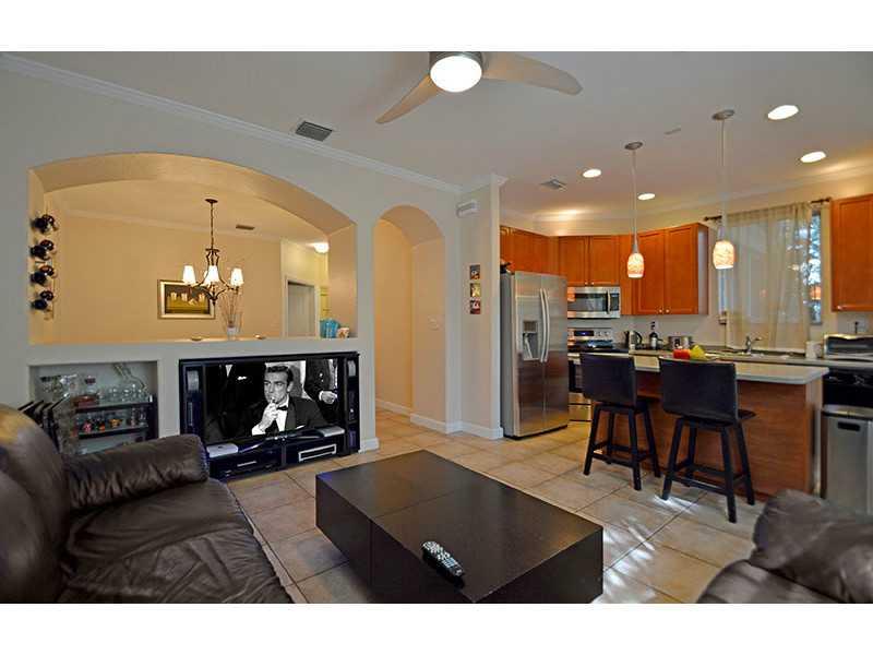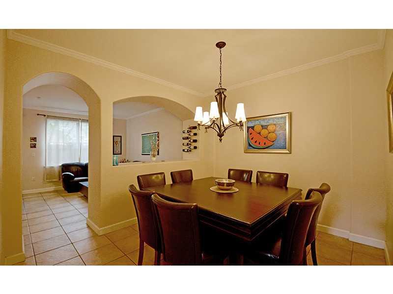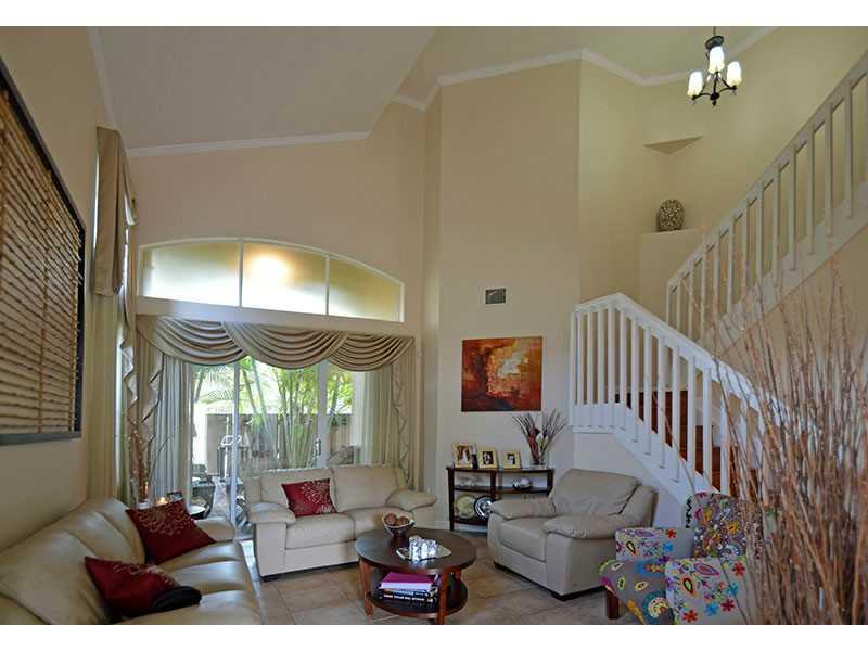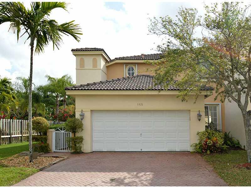 Beautiful 3 bed/ 3 bath corner townhome in a premier Doral Gated Community. This 2-story home has an great kitchen with stainless steel appliances, wood cabinets and center island. All ceramic tiles downstairs and laminate wood floors upstairs. This home features an open environment, with high ceilings and 2 car garage. The community is close to major highways, great schools, 24 hr security, club house and pool. Move in ready!