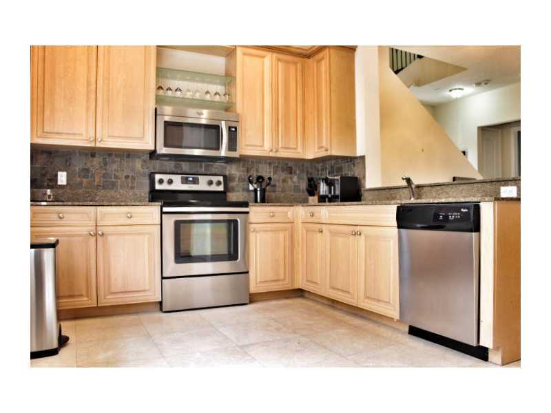 Largest corner unit for sale with many upgrades & features: Impact glass, Marble Floors, Updated Kitchen w/S.S. Appliances, Granite backsplash & Countertops. Wood stair case leads up to the main living area & spacious master bedroom w/updated master bath, w/granite sink tops & Jacuzzi tub/shower. Master closet has been nice built-out. Home has full security w/alarm & with cameras. Unit has 2 balconies & ample storage in garage & closets throughout. There is a private community pool as well.