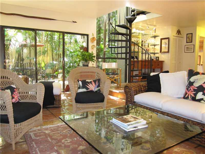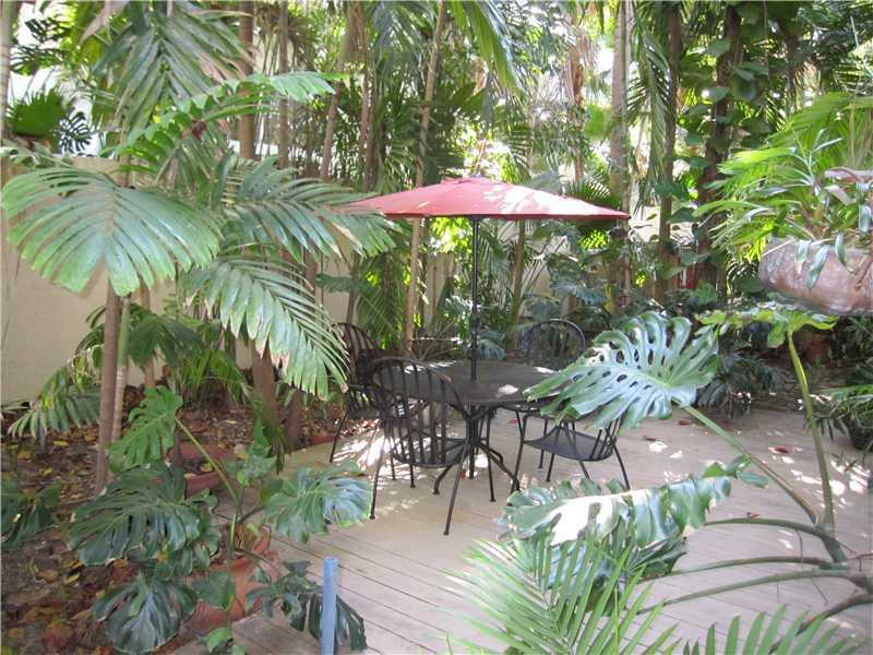 Tropical living at its best. This charming, 2/2.5 updated town home is located on a no traffic, dead end street in Center Grove. Just steps from Biscayne Bay, Downtown Coconut Grove, local parks, Fresh Market, yet very quiet and peaceful. Open floor plan . Wood burning fireplace. Hunter ceiling fans throughout. Lush vegetation . Updated kitchen with wood cabinets and granite countertop. Private walled and fenced in yard, excellent for quiet times or for entertaining. "Not a condo but HOA!