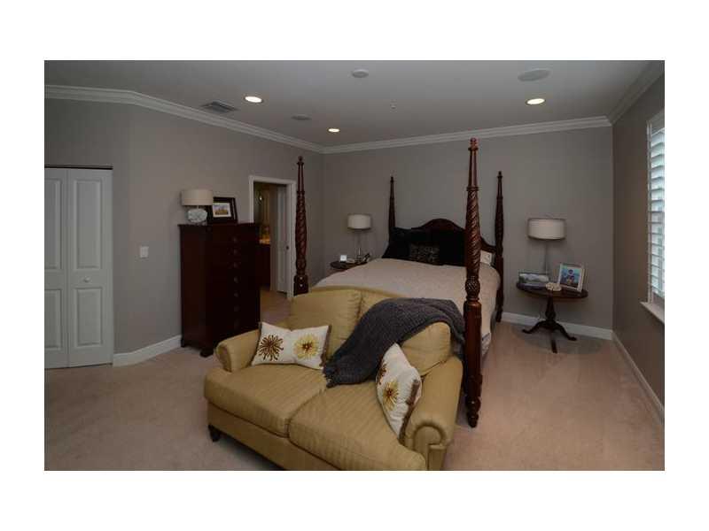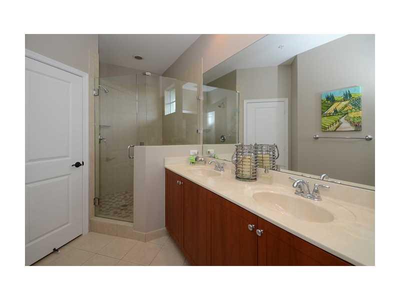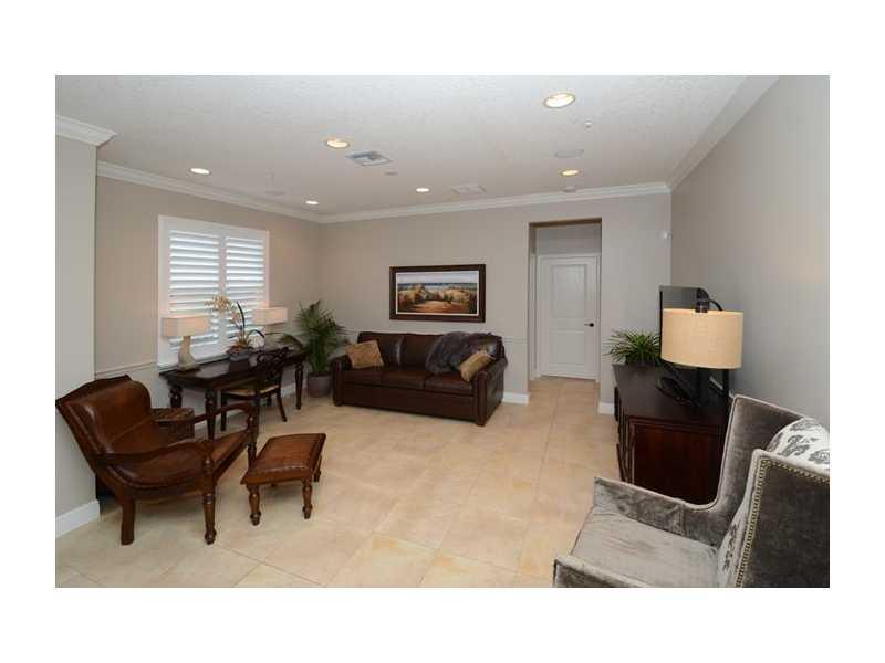 IMMACULATE! Completely upgraded 3/3 (plus small bonus room), 2 car garage, corner townhouse steps from community rec facility, gym & pool. Tastefully appointed...updated kitchen w/wood cabinets, granite counter tops & stainless steel appliances, Plantati on shutters, crown molding, surround sound wired throughout, 1 bed & 1 bth downstairs, 24 hr guard gate. A must see!