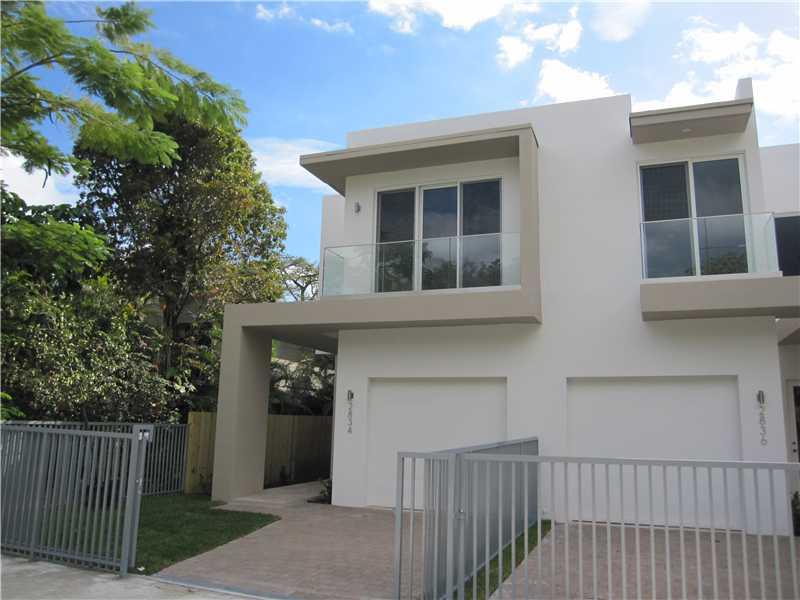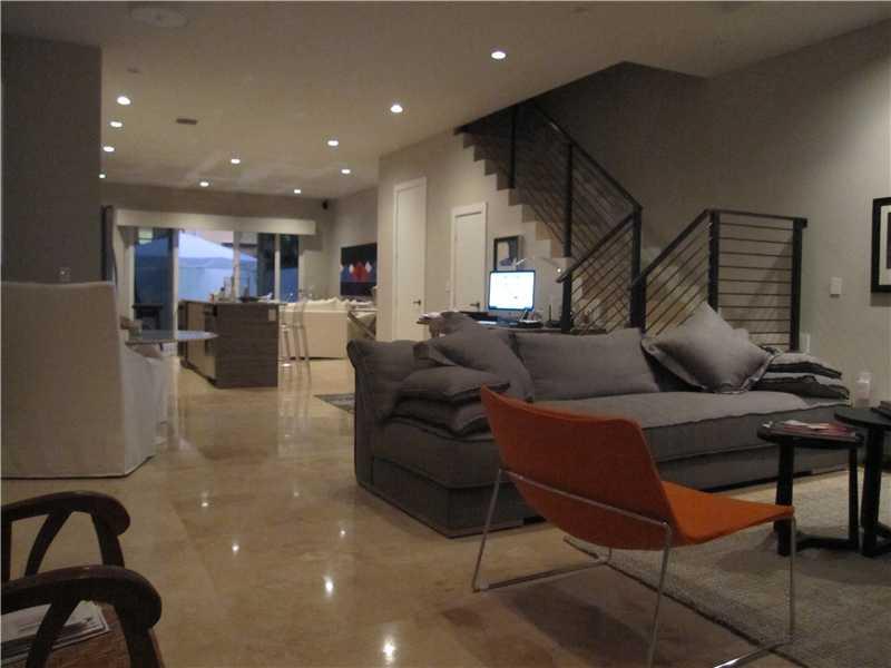 Modern architecture at its best. Top of the line finishes for this three bedroom, three and a half bath town home include travertine marble floors, designer kitchen and bathroom cabinets, quartz countertops, Italian porcelain tile floors and walls in the bathrooms, 20+ foot ceilings in the living room, remote controlled blinds and no maintenance front and back yard. Private pool. Three master suites on the second floor. Alarm system with cameras. One car garage plus two car gated parking.
