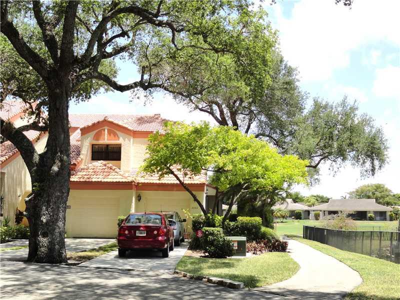 The C-10 canal,a lake full of fish and the Emerald Hills Golf Course are your views. This Beautiful corner unit town home is in the tree lined streets of Emerald Oaks gated community.Spotlessly clean 3 bedrooms and 2 full baths. Great Floor Plan, master b edroom, livingroom and kitchen all have sliding glass doors leading to the screened paio. Nice size redone kitchen with stainless steel appliances and of course washer and dryer.1 car garage and long driveway for extra parking. Call for an appt.
