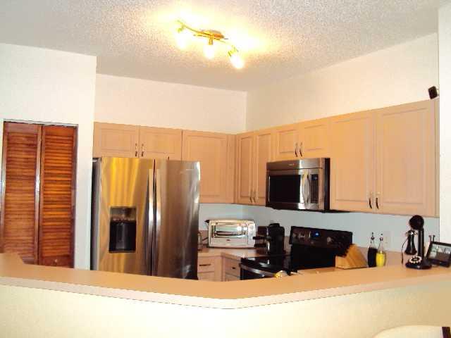 Upgraded to the max. 3 bedroom 2 1/2 bathrooms 1 car garagetownhome.This unit features tiles in all living areas. Laminated floors in staircase and 3 bedrooms. Accordion shutters. S.S. appliances with a great French Door Refrigerator . Wood cabinets and r emodeled bathrooms. High efficiency Washer and dryer. All appliances are one year old and A/C 2 years old. Private patio. All tiled. All new light fixtures.
