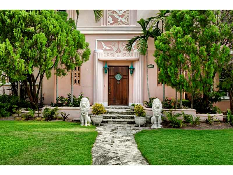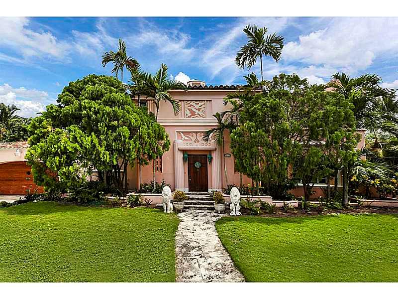 Incredible architectural masterpiece by Henry Hohauser located on prestigious Pine tree Drive. Coral stone & hardwood floors, detailed ceilings, curved staircase, formal dining room, original kitchen and baths, 2 car garage and detached in-law two room su ite. Three bedrooms upstairs, large yard with pool all add to the value. Home needs updating, but well worth the effort.