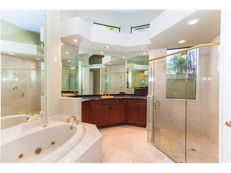 This spacious 4 bedroom home plus den features a paver driveway, tropical landscaping, double door entry, marble floors in living areas, a built in entertainment center and wet bar in the family room, an updated gourmet kitchen, updated bathrooms, a priva te master suite with a soaking tub, and a private backyard with a covered paver patio and pool with nice water view. St Andrews is a mandatory membership community.