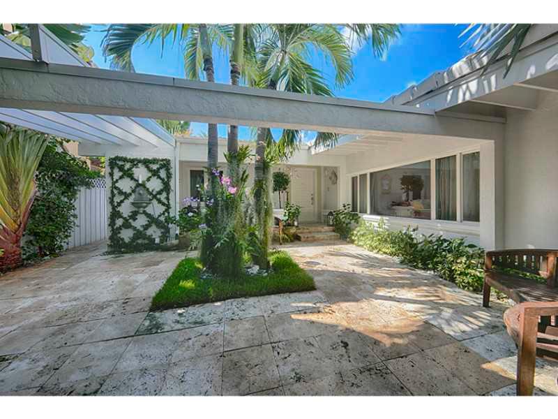 Live in a tropical island paradise on Palm Island in this beautifully designed private escape. Enjoy impeccable taste & classic beach style in this 3 bedroom, 3 bathroom waterfront home featuring 50' of waterfront overlooking Downtown Miami, stunning courtyard entrance, private driveway, large maintenance-free dock, heated pool, top of the line appliances, quartz stone counters, high impact windows, beautiful high ceilings, French doors, limestone flooring & lots of natural light throughout.