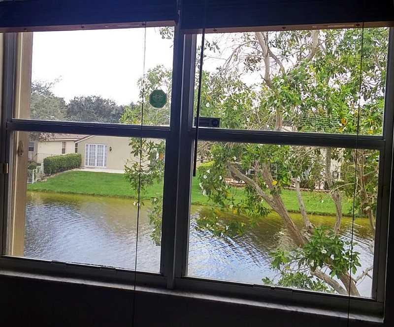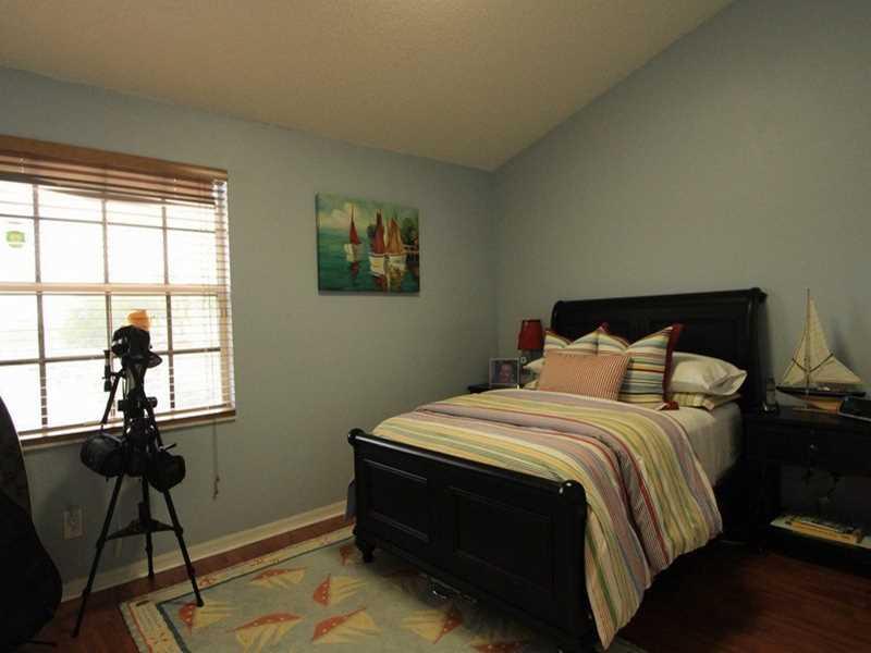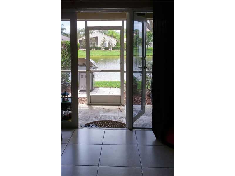 Beautiful Lake view 2-Story Townhome in quiet Gated Community. Remodeled kitchen with granite counter tops and stainless steel appliances. 1st floor tiled throughout with French Doors and remodeled bath. Wood laminate throughout second floor. Both upstair s rooms have full baths. Garage converted to 3rd bedroom. Alarm system. Laundry in unit. Screened-in tiled terrace. Community has a clubhouse for parties, pool, tennis court, and walking paths.