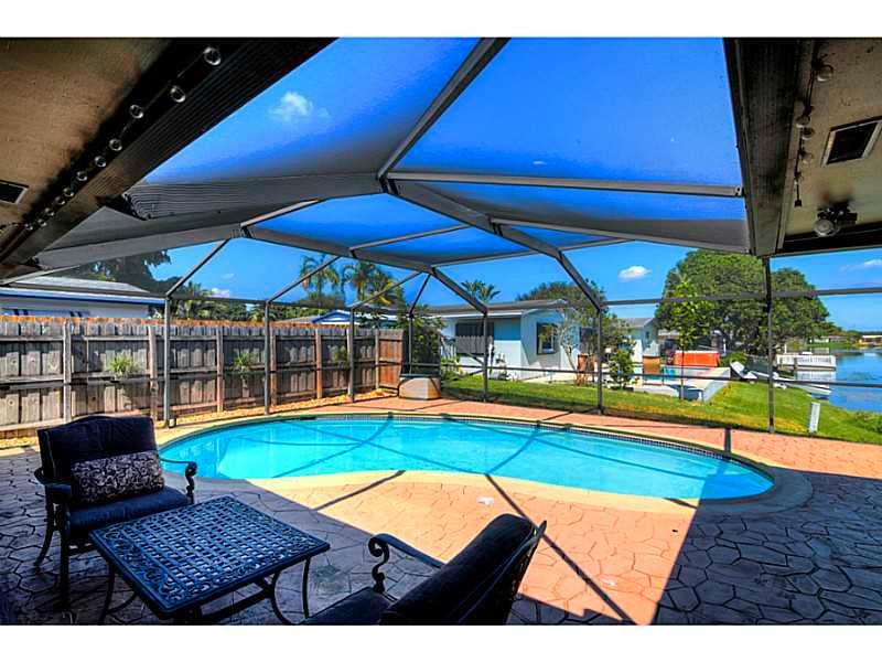 STUNNING, COMPLETELY REMODELED, 4Beds/2Baths Waterfront Pool Home...OVER $80K in recent upgrades... situated on oversize corner lot. Features Hurricane Impact Windows. Gourmet Kitchen with Custom Wood Cabinetry, Granite Counter tops, Large Island, Wine & Beverage Cooler, Stainless Steel appliances. Porcelain Tile & Laminate Wood floors throughout. Tastefully Remodeled bathrooms frameless glass shower... Salt Water Pool with Lake View. Circular drive way....NO HOA!!! Hurry, This one won't last!