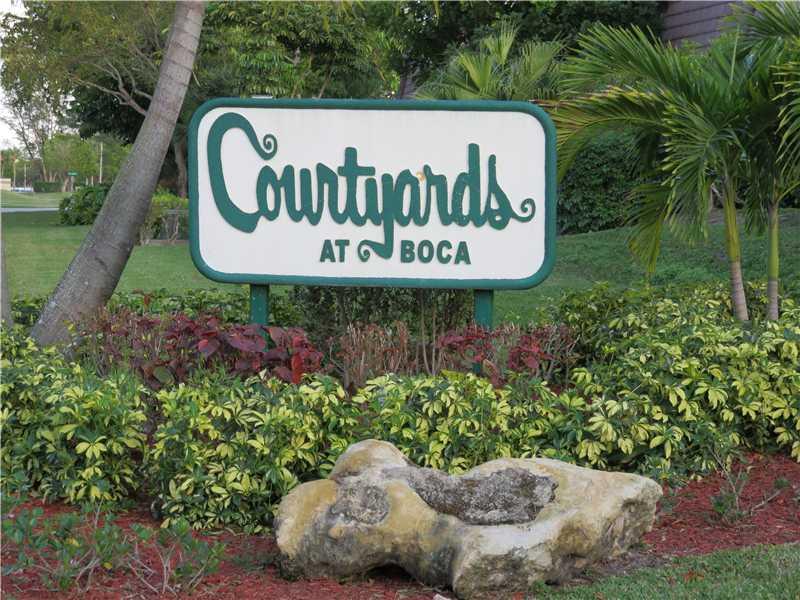 Beautiful 2 Bed 2.5 Baths Town home in the center of Boca. Great location!!Large and cozy fenced courtyard patio excellent for entertaining and relaxing. Two large Master bedrooms upstairs with new gorgeous BAMBOO Flooring thru the stairwell. Freshly pain ted in neutral colors. Updated bathrooms with exotic granite top vanity & double sinks. Pet friendly, all ages,& rentable community. Full size washer and drier included. FINANCIABLE!! FHA/Conv offers ok. SUPER CLEAN UNIT & EASY TO SHOW! Move in ready.
