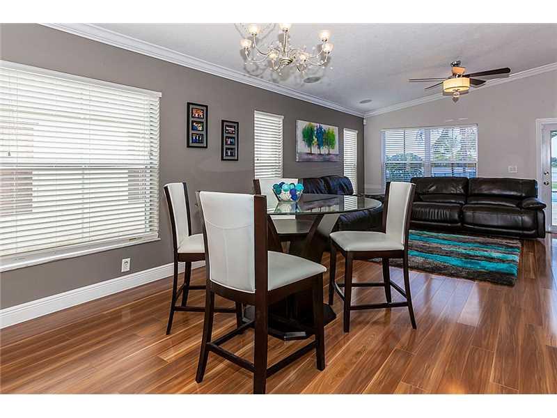 Spectacular Sunsets And Tropical Breezes Await You In This HIGHLY UPGRADED Beauty. Turn Key Home Features State Of The Art Kitchen With Hood, Stainless Appliances And Gorgeous Granite. Elegant Wood Floors In Living Areas. Crown Moldings and Neutral color s. Built In Closets. Upgraded Baths. Newer AC. Exterior Features Big Sparkling Pool with Travertine Deck. Huge Fenced Yard, Lake With Private Dock. Breathtaking Private View. Extra Parking Out Front. Great Schools. Gated Community.