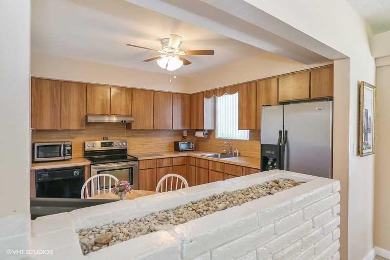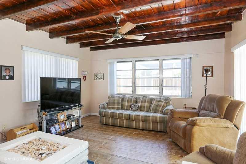 Mid Century Modern home, updated but with original charm. 3 beds/1 bath/1 car garage/pool. New roof 2014. Tile floors thruout. Newer fridge, stove, dryer, pool filter. Updated bath-granite counter. Original brick mantle with gas fireplace(not connected). Original wood beam ceiling in Florida room. Bedroom closets have extra storage on top. 2 hall closets. Large utility room with washer/dryer, plenty of room for a pantry. Large screened patio, large yard. Rain gutters front & back. Move in ready. Come see!