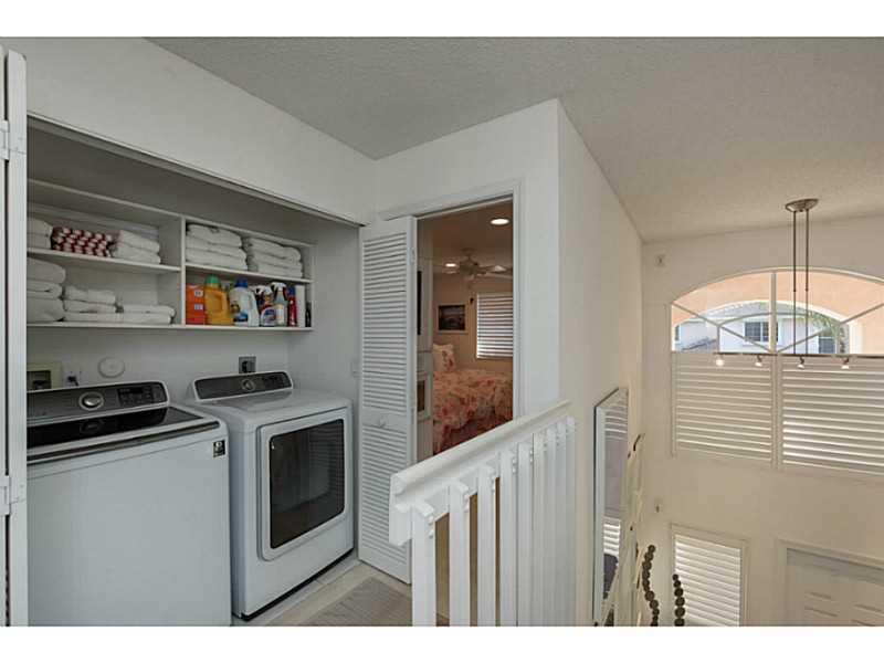 Pristine 3/2/1 corner town home with many upgrades including a remodeled kitchen w/9' floor-to-ceiling cabinets and 2 pantries. New A/C, air handler and electro magnetic clean air system. Plantation shutters, vaulted ceilings, 6 built-out closets, walk-in master, Jacuzzi, full window/door hurricane protection, digital life security. Storage, storage and more storage! Pets allowed w/restrictions. A must see to believe! Priced below "comparable market analysis for immediate sale."