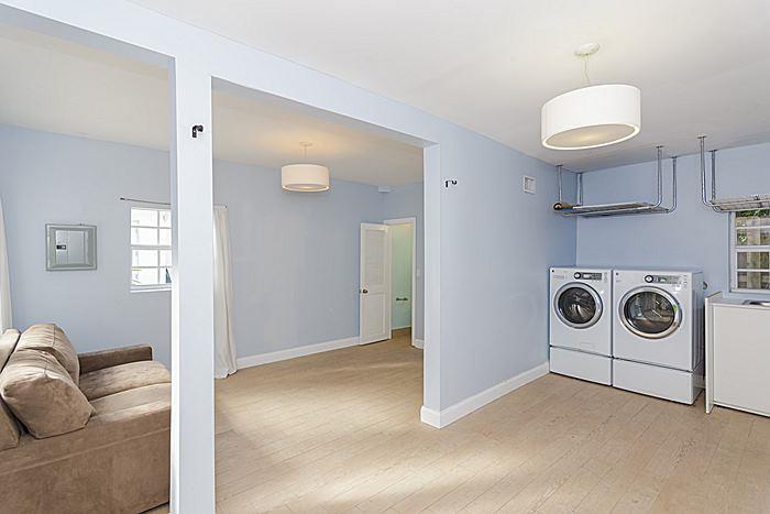 Main house incl 4BR/ 3.5BA, impact windows & doors, new A/C, hw floors thru-out. Kitchen renovated in 2014, top of the line appls &cabinets in country French style. dining rm w/ huge windows & French drs open onto lush pool & patio. Detached 2 story guest house incl1st floor single bedroom w/ full bath & upstairs efficiency w/ sep. entrance, full bath & kitchen. Private back yard w/ brick patio, outdoordining, outside shower & tropical landscaping. Large salt water pool w/ fountain & heater.