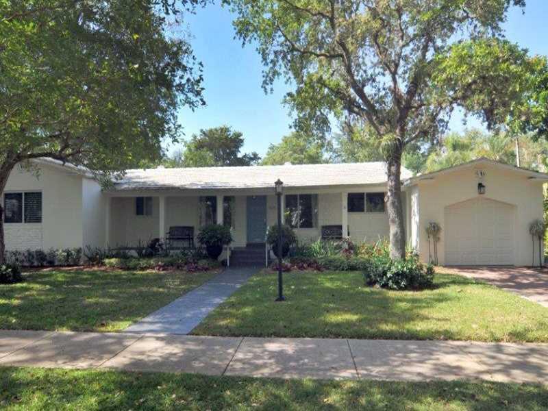 The French Village Area! Desirable South Gables 4 bedroom 3 bath split bedroom residence situated on a quiet tree lined street. Tastefully updated kitchen and baths. Displays hardwood floors, vaulted ceilings, French doors and impact windows. Crown moldin g. Walk-in closets. Double sinks in master bath. Covered front & back porches. Family room overlooks tropically landscaped private pool area. Perfect for entertaining and living the South Florida lifestyle. One car garage. Alarm. Great location.