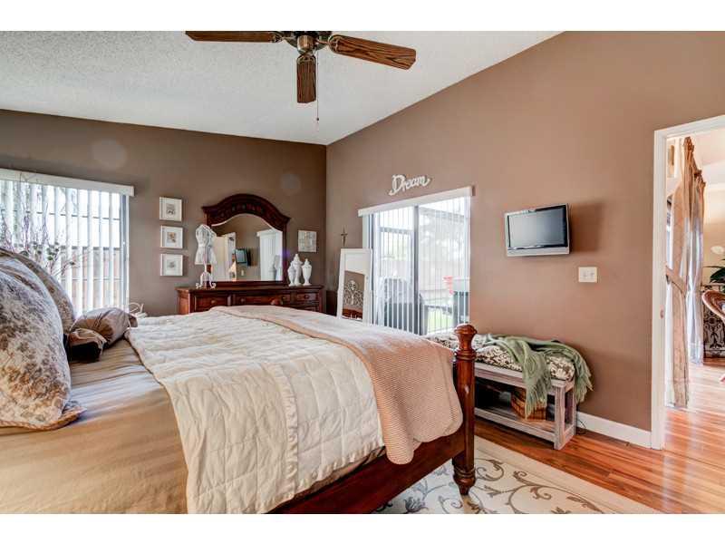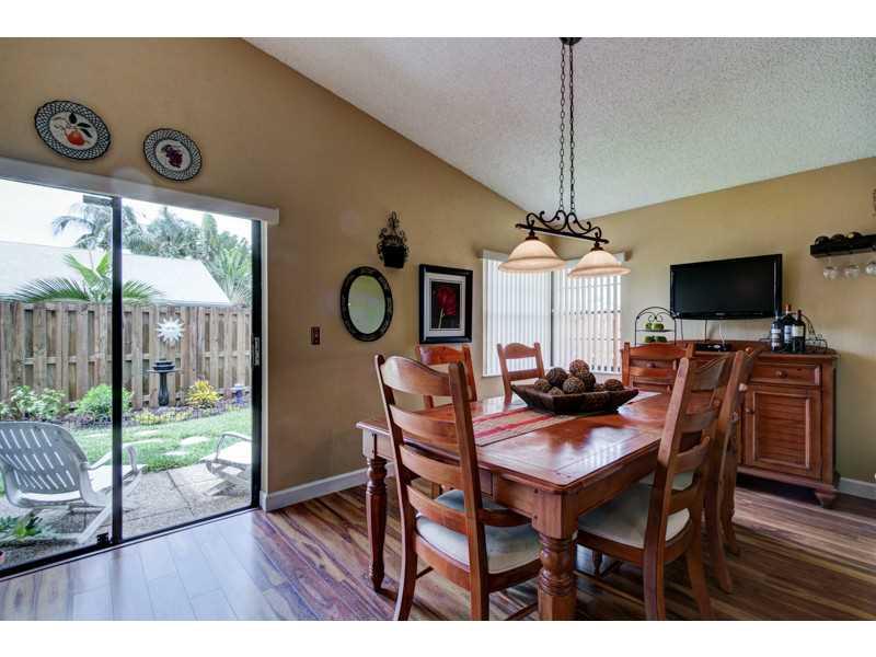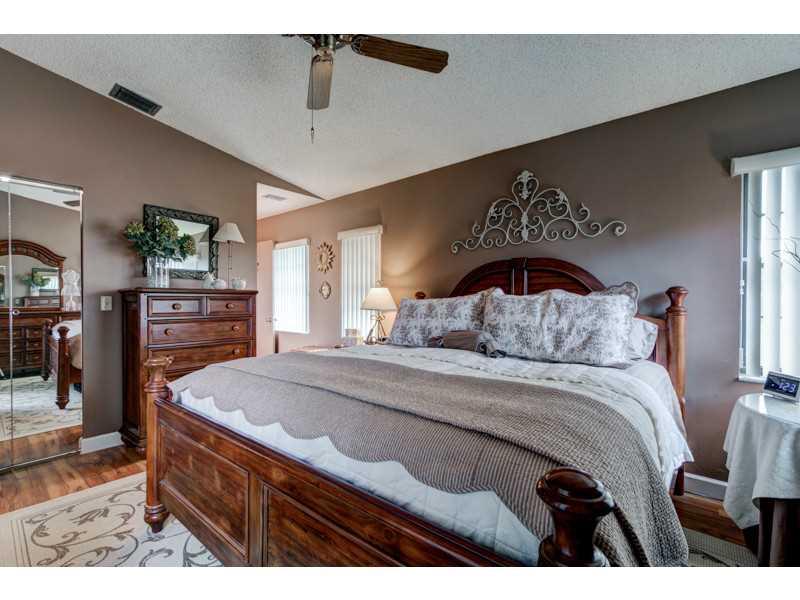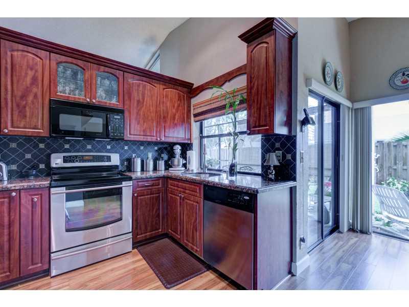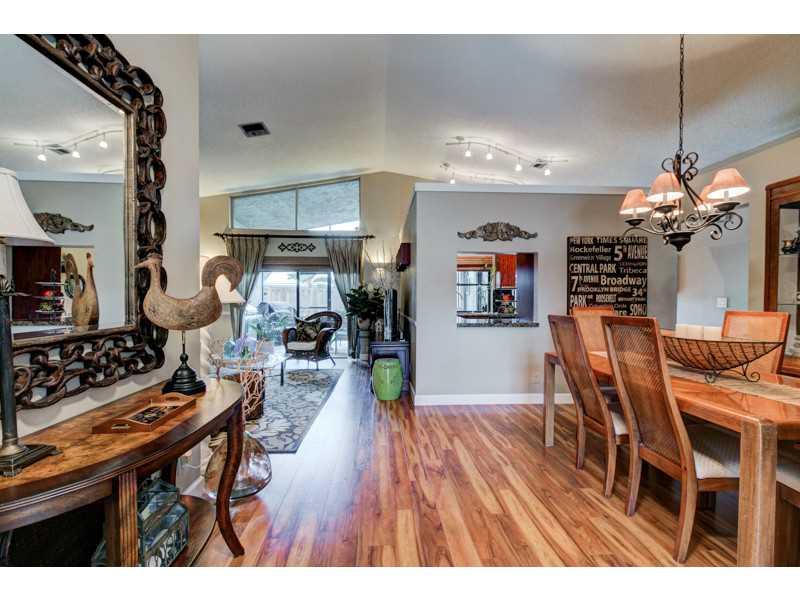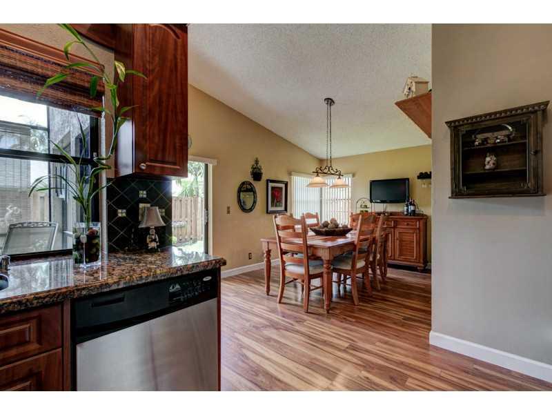 Immaculately maintained Single Family home in a cul-de-sac. Split floor plan. Laminate floors throughout social areas and master bedroom. Berber carpet in other bedrooms with built-in custom closets. Walk-in closet in master bedroom. Remodeled kitchen wi th stainless steel appliances, convection oven, granite counter tops. Large screened porch with new indoor/outdoor carpet and fan. Fenced backyard. Alarm System. Sprinkler System . Community Pool. Walking distance to Sunrise Recreation Center.