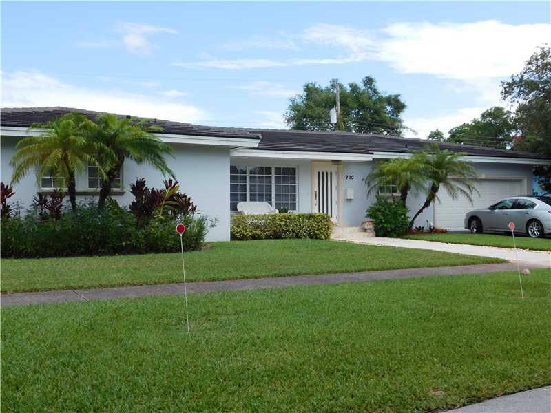 REDUCED! Completely remodeled and superbly maintained Coral Gables home near UM. Split 4 large bedrooms (2 masters), including elegant den/office and lots of closet space. 3 updated marble baths. Kitchen has real wood cabinets, granite countertops, s/s a ppliances, wine cooler. High ceiling family room with web bar for entertaining. All French doors are impact and open to covered terrace & pool/patio area. Fenced yard. 2 car garage with plenty of storage. 2 yr. old roof, 2 zoned central a/c.