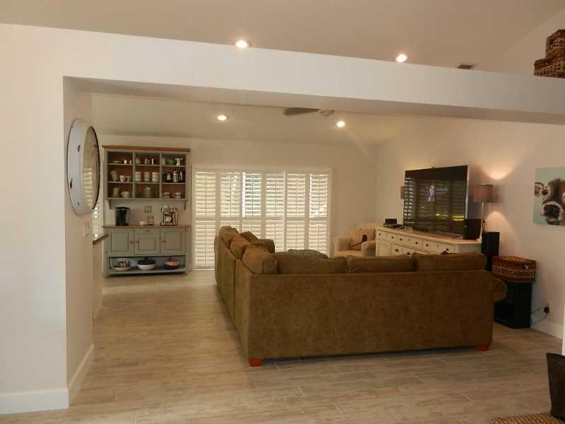 Wonderful home in recently gated community and corner lot. This house has vaulted ceilings, great light and an open layout, Brand new beautiful wood tiles throughout the living areas, inside laundry room, nice screened back patio, closet organizers and pl antation shutters. You must come see this house before it is too late.