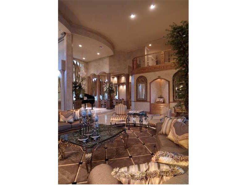 Custom Mediterranean estate w/stone columns,gorgeous marble slabs & chef's kitchen nestled in gated community on a 2 acre water front lot.8 bdms,gym,playroom & grand great room.Massive marble master ste. with impressive his/her showers & large whirlpool t ub.Each bathroom features marble with Jacuzzi tubs.Backyard w/ lighted basketball/tennis court, covered patios & summer kitchen.Whole-house generator & hurricane impact glass.