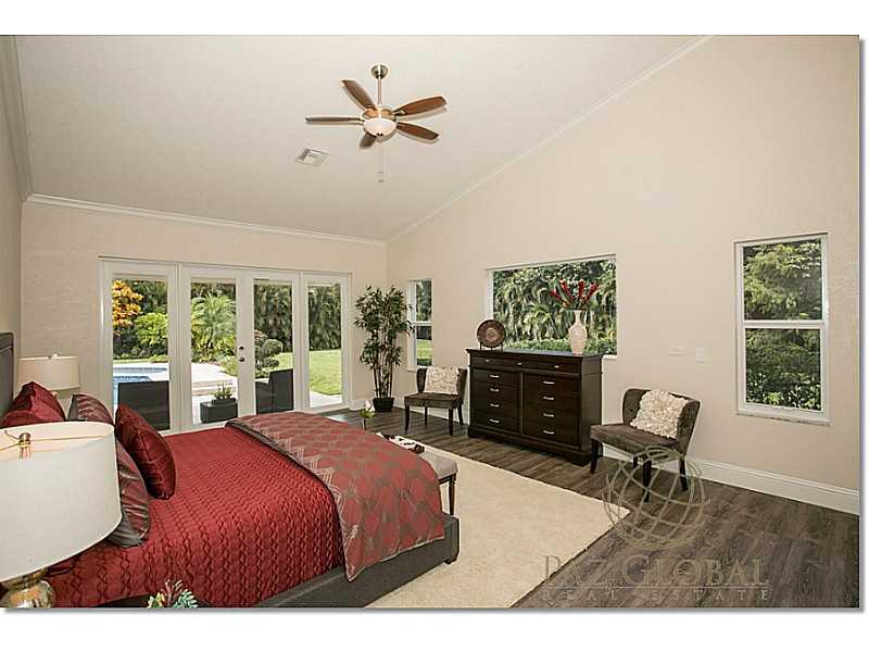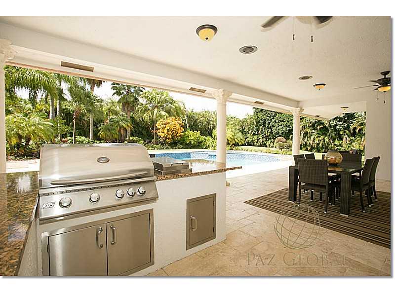 Amazing 5/5.5, 4+ cars garage, pool/spa, private yard & 1/1 guest house w/wet bar/kitchen & outside patio. Main house family room has stunning wall unit feature w/fire place, master has his & hers dressing areas, California closets. Baths has floating tub & glass enclosed shower. New kitchen w/granite counters, mosaic glass backsplash & new SS appliances. French doors throughout, outdoor kitchen & patio. Guest house has bedroom, full bath, living room, kitchen area & an outside patio. New windows & roof