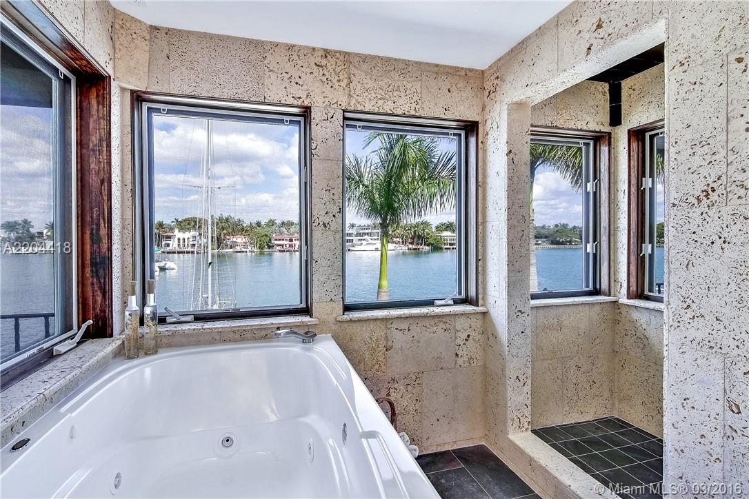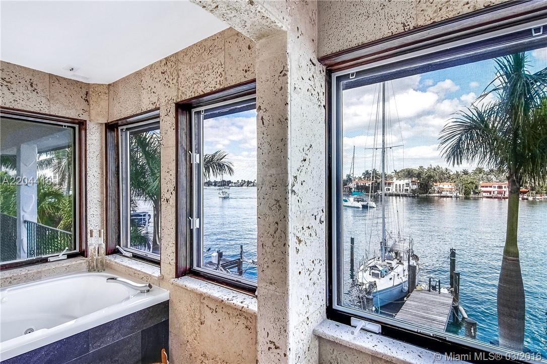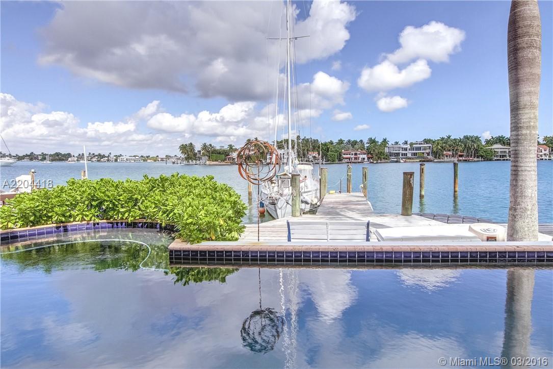 Relax & enjoy the peaceful, sweeping views from your private dock & pool deck. This large home features an open floorplan, media room, gourmet kitchen & wet bar making it a perfect entertainment space or family home. Separate guest suite with full size ki tchen & bathroom adds to the appeal of this unique property in the ideal Miami Beach location. Featuring spacious 4 car garage and 3 boat slips. Palm Island amenities include: tennis courts, covered playground, basketball court, picnic area & guard gate.