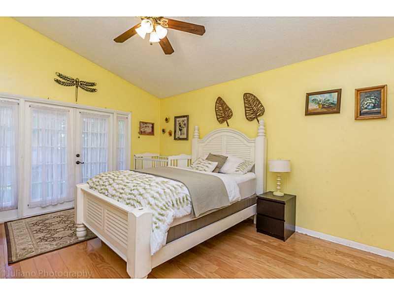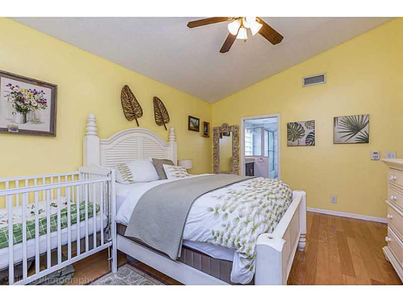 Welcome home to your tropical paradise. This charming home features an open floor plan, vaulted ceilings, a beautiful master suite, updated bathrooms, ceramic floors in main living, bamboo flooring in bedrooms, stainless steel appliances, bay windows and French doors leading you to a backyard oasis. Nestled in sought after community of Bermuda Springs, known for its magnificently maintained community pool and parks and located within a short walking distance to A rated schools and houses of worship.