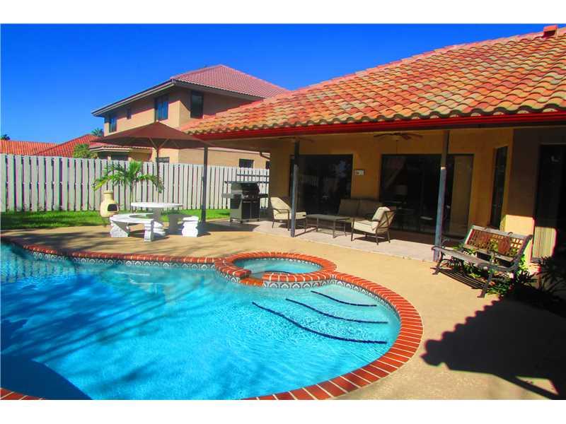 Splendid home located on a large culd e sac in a family oriented community with excellent schools. Brand new barrel roof installed worth 27k, freshly painted inside and outside, with new wood floors and new stainless steel appliances including washer/ dry er. Split floor plans with vaulted ceilings, Mater bedroom with views of the pool, his /her closets, soaking tub, double sink & separate shower. Fenced yard with patio ideal for entertaining, Lushly land escaped, hurricane shutters, A Rare find Must See!
