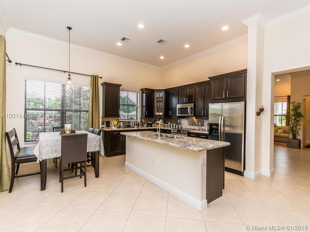 Spectacular Chapala Model. Spacious Floor Plan, with 18"x18" beige tile floors in common areas. Berber carpet in bedrooms. Upgraded Jack&Jill. Gourmet Kitchen with Granite counter tops,cooking isle,wood cabinetry,stainless steel back splash & appliances. Crown Molding. Window Treatments, Stone Wall, Hurricane Impact Resistant windows, doors, & Glued down Tile Roof. Granite counter tops in bathrooms. Walking distance to Club House, Pool, Tennis, Gym, Dog Park, Bike & walking Trails, Truly a Must have home.