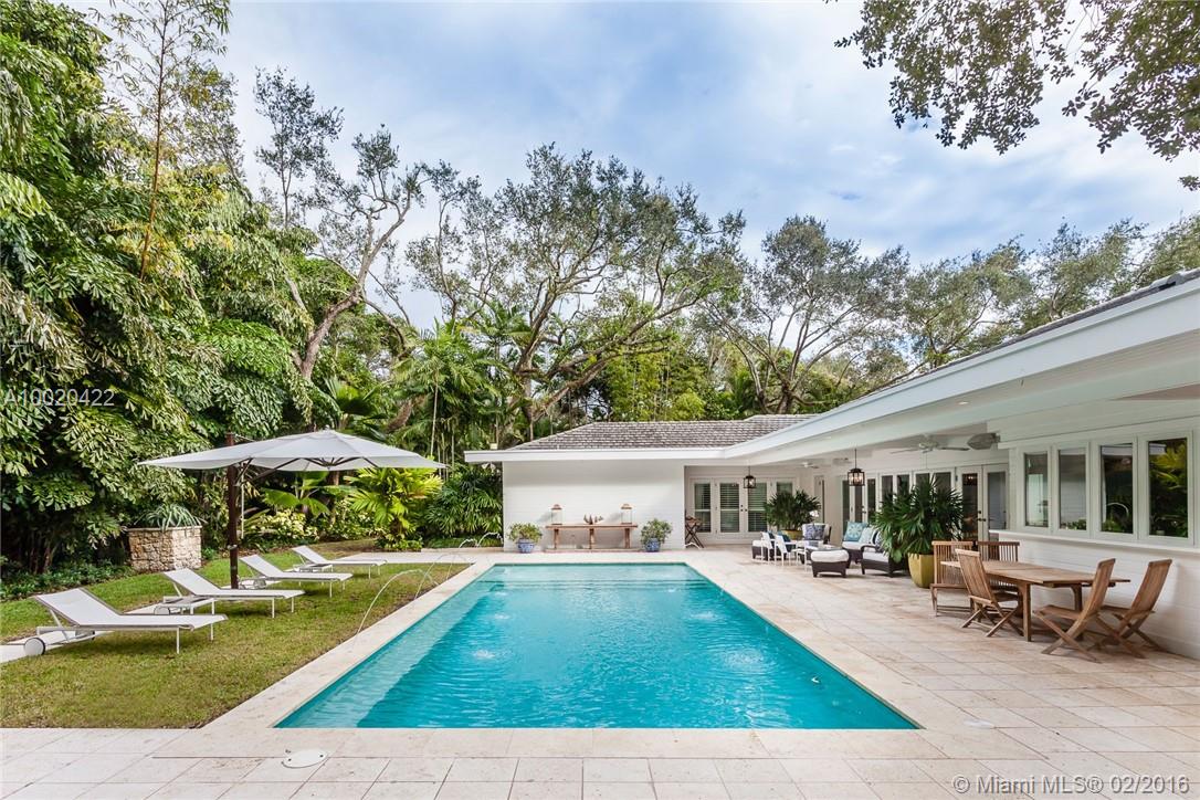 Renovated tropical home in one-of-a-kind Ponce/Davis location. Bedrooms with French doors to beautiful landscaped gardens. Majestic pool area accessible from the living room, dining room, kitchen, family room, and master bedroom. Designer finishes used throughout such as Calacatta Gold marble, Walnut Travertine, and Herringbone solid wood floors. Home is fully connected with a home automation system, full house generator, landscape lighting, and incredible indoor and outdoor entertaining areas.