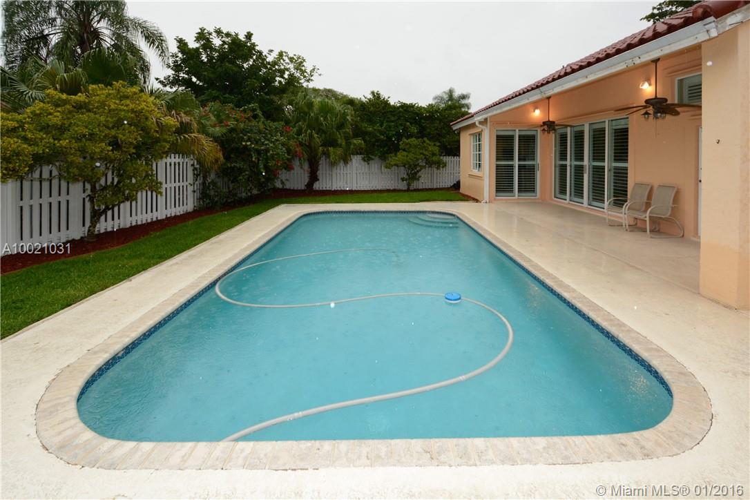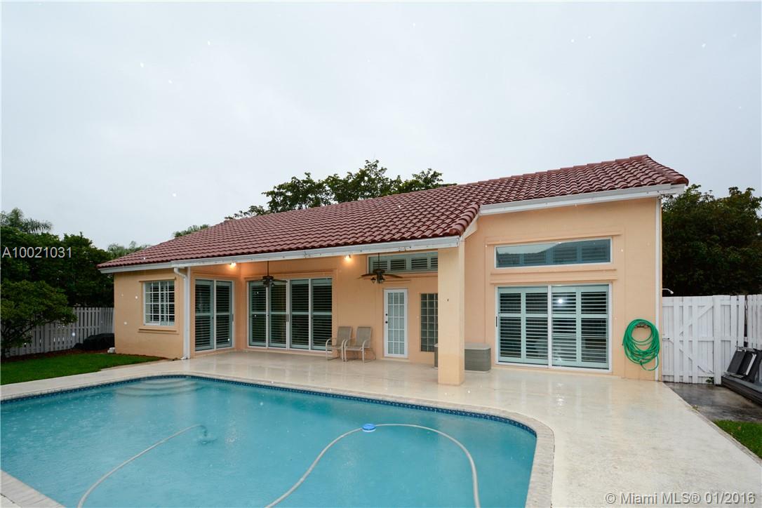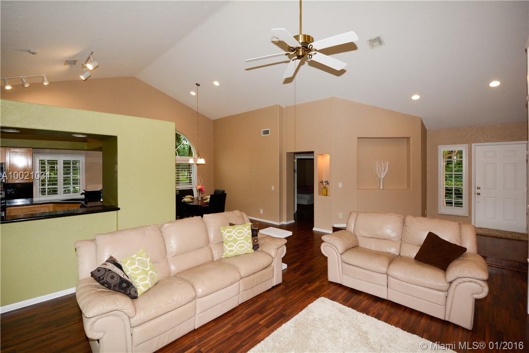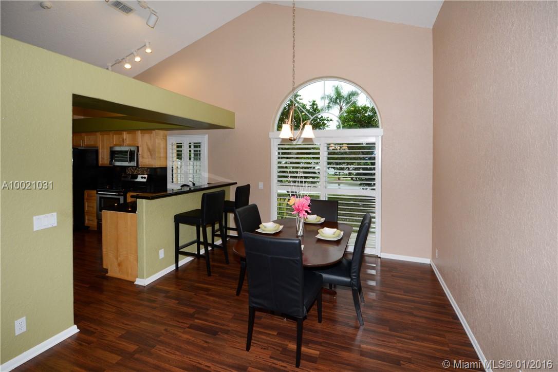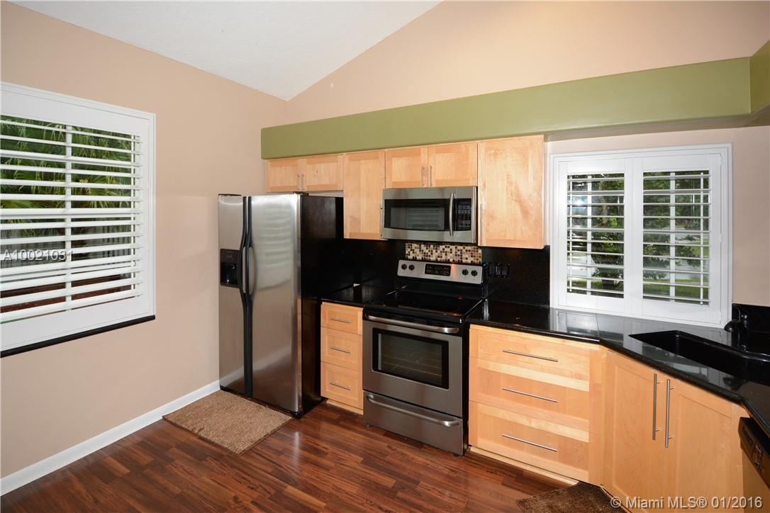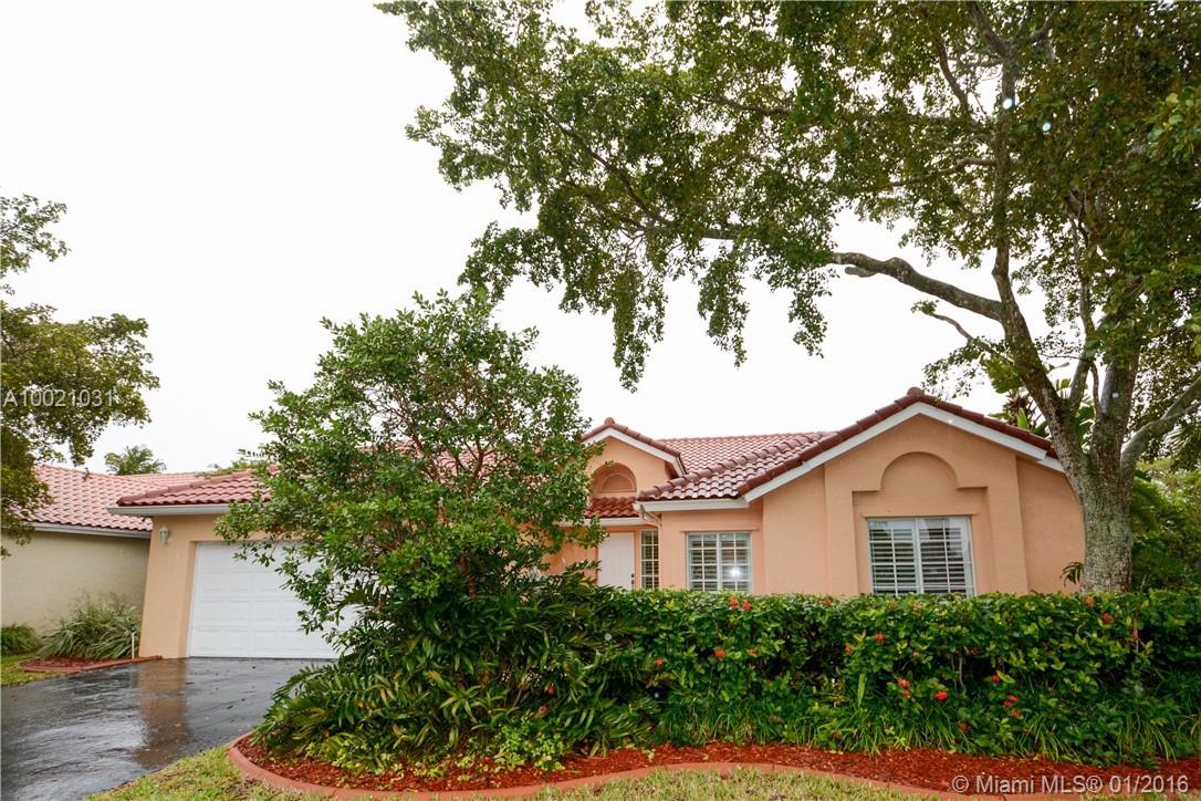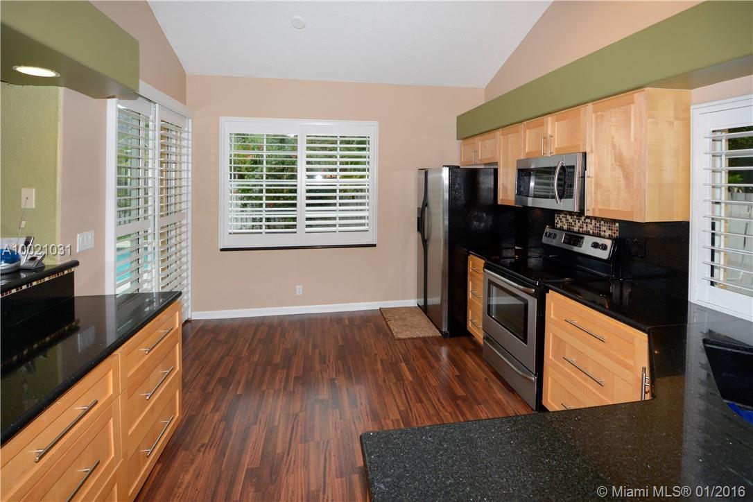 Move-in condition Aledo model is on a nice sized corner lot and offers 3BR/2BA & 2 car garage. Upgraded eat-in kitchen with wood cabinets, granite counters and stainless steel appliances. Fully fenced and private yard and swimming pool and covered patio. Elegant plantation shutters on all windows. Wood laminate flooring in the social areas and carpeting in the bedrooms. Gated community is in walking distance to Weston Town Center.