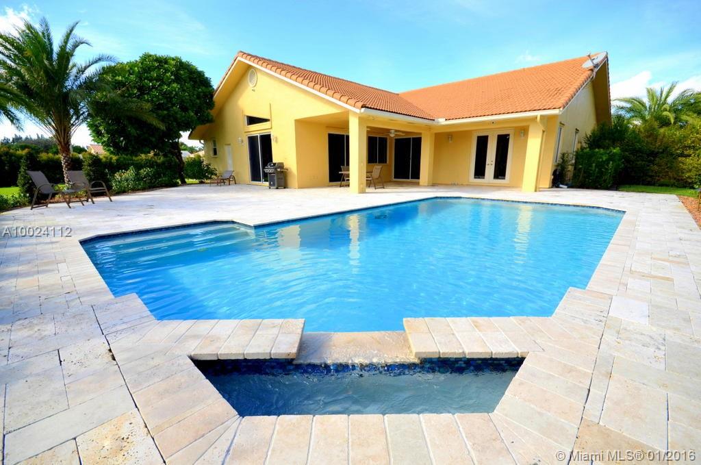 AMAZING HOME SITS ON FENCED 1.27 ACRES LOT IN LETO ESTATES, DAVIE. PROPERTY FEATURES STUNNING BACK YARD W NEW POOL, PATIO, LANDSCAPING & GORGEOUS LIGHTING. EXTENDED DRIVEWAY FITS MANY CARS W/ ROOM FOR RV/BOAT INSIDE EXQUISITE NEW IRON GATE. SPLIT FLOR PLAN W LARGE MASTER SUITE W/2 WALKIN CLOSETS, PRETTY FLOORS, DUAL GLASS RAISED SINKS, ROMAN TUB, LARGE SHOWER. HIGH CEILINGS, OPEN KITCHEN W GRANITE TOPS, STAINLESS STEEL APPLIANCES & RECCES LIGHTING. LARGE LIVING & FAMILY ROOMS GREAT FOR ENTERTAINING.