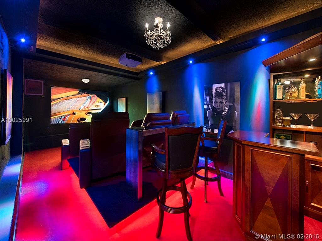 Entertainment delight, beautiful updated waterfront home with over 7600 sq ft in gated and desirable Gables by the Sea. Enjoy the pool, custom landscape, Koi ponds and Tiki hut by the large covered entertainment patio. Watch sports in your home theater with popcorn machine and bar. 4 bedrooms and 3.5 bathrooms on the main floor plus a game room, bedroom, den and bathroom on the ground floor. Can be used as an in law suite. Large living room and formal dining room. Enjoy elegant Florida life. 4 car garage.