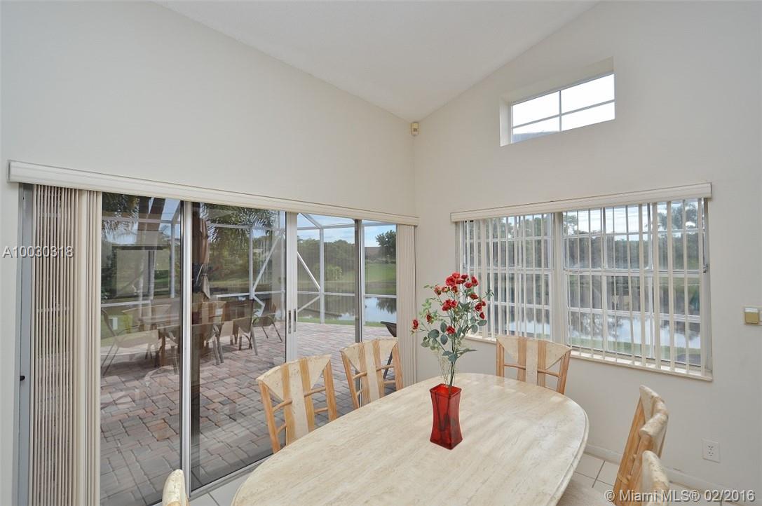 IMMACULATE 3 BEDROOM /2 BATHS ON AN OVERSIZED CUL DE SAC LOT/ SPACIOUS PAVERED PATIO/ POINT WATER LOT WITH PANORAMIC LAKE VIEWS / SCREENED COVERED PATIO / SPLIT BEDROOM PLAN / EAT-IN COUNTRY KITCHEN/ GRANITE COUNTERS/ FRESHLY PAINTED EXTERIOR/ ROOF REPLACED 2010/ PAVERED DRIVEWAY, ENTRY AND PATIO/ GATED ENTRANCE / TOT LOT/ COMMUNITY POOL/ CLUBHOUSE/ CONVENIENT WESTON LOCATION / EXCELLENT A RATED SCHOOLS / WALK TO SCHOOLS, PARKS, RECREATION, SHOPPING / EASY ACCESS TO MAJOR ROADS, AIRPORTS AND RESTAURANTS.