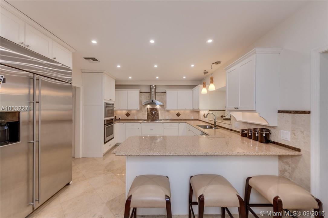 Manicured grounds & red brick driveway welcome you to this classic corner lot estate on coveted Sunset Island II. Natural light & a contemporary aesthetic highlight this 5bed/6bath flow-through home featuring gourmet kitchen w/Monogram appliances & glass cabinets, formal dining & den w/builtin bar & direct access to pool/backyard through French doors. Spacious master w/spa-like bath boasting soaking tub & vanity. Wall of hedges for privacy, coral limestone deck & large pool make this home complete