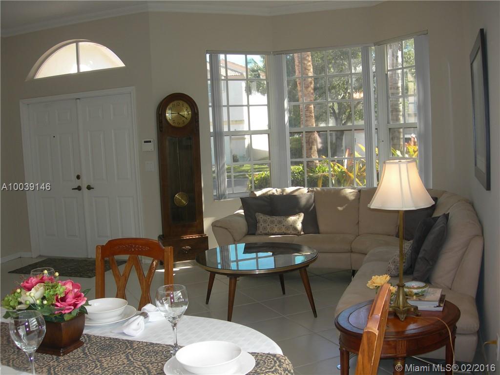 Super location. Very comfortable well maintained home. Lots of natural light. Open floor plan. Large spacious kitchen and family room. Burglar alarm and security patrol. Beautiful tree lined streets in gated community. Fruit bearing mango tree in rear. Less than 1.5 miles to grocery stores, restaurants, theaters and great schools. Close to churches, hospital clinics and recreation areas. Access to gym, tennis courts, ball and soccer fields. Several swimming pools to choose from in the development.