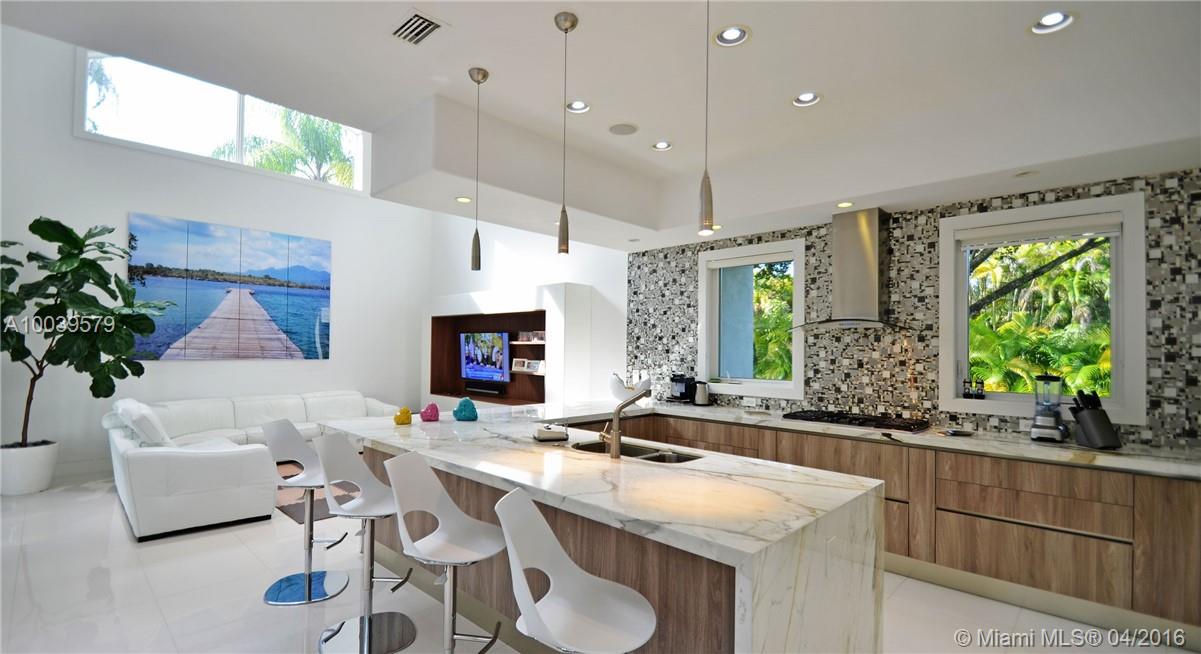 Prestigious contemporary residence nestled in the heart of North Pinecrest. Features double height living room bringing in plenty natural light. Built with concrete roofs, impact windows, eco-smart water heaters, high efficiency A/Cs, and elevator. Outside the home features a large terrace overlooking the pool, landscaping and a private park with synthetic grass. Move-in Ready!