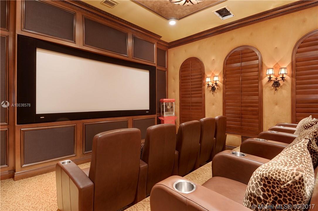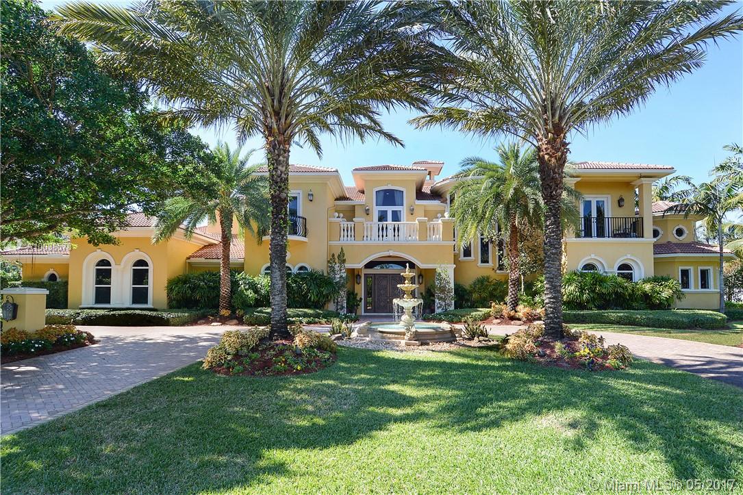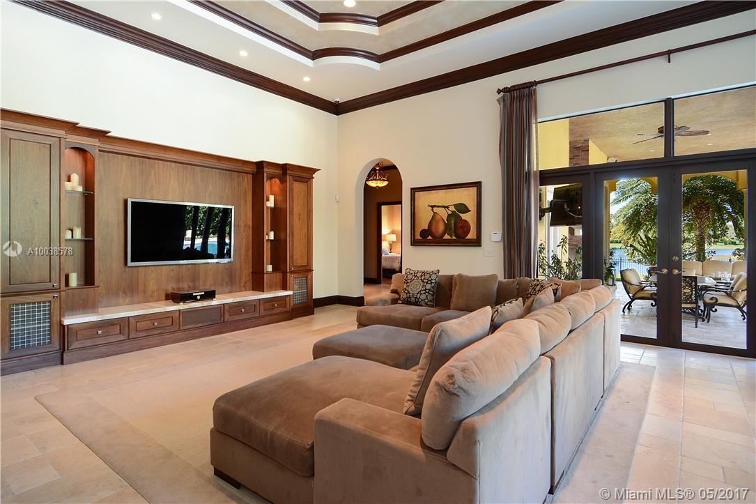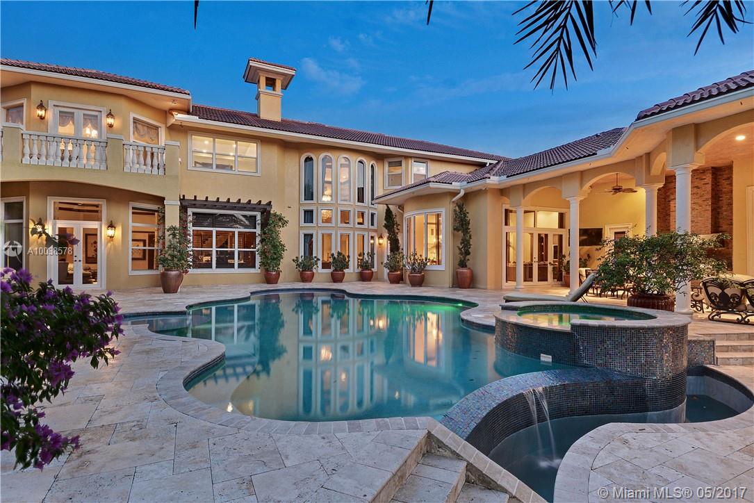 Exquisite custom built two story waterfront home on a private lot with lavish tropical landscaping. Features include an impressive grand foyer entry and formal living room with fireplace, gourmet kitchen, curved glass wine cellar, theater, billiard room, walk-in humidor with cigar / poker room. High end finishes include Venetian plaster walls, faux painted coved and coffered ceilings and custom millwork throughout. Free form infinity edge pool and spa, large patio with outdoor summer kitchen. A must see!
