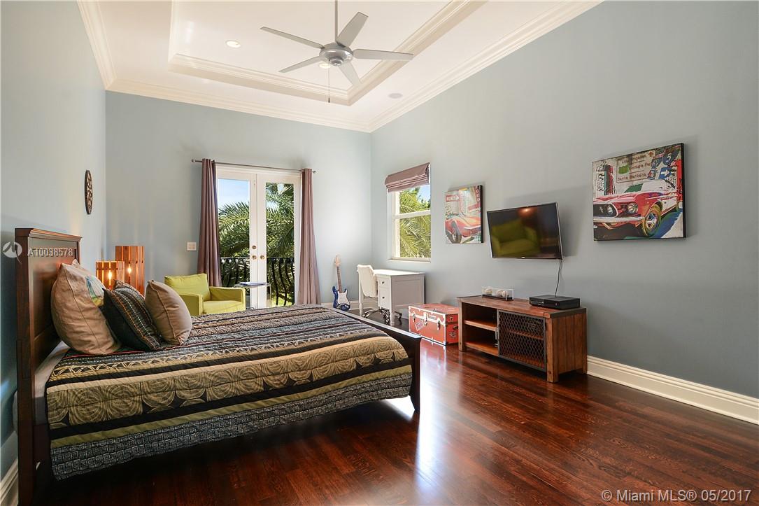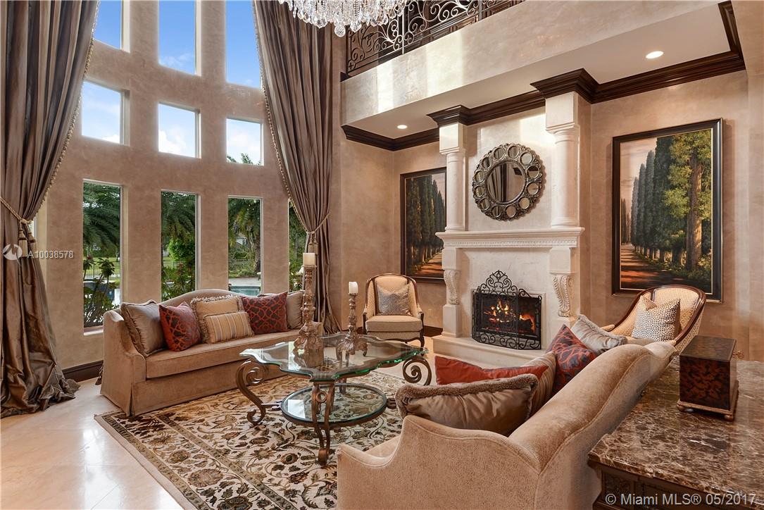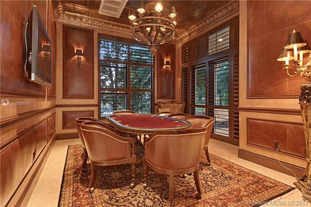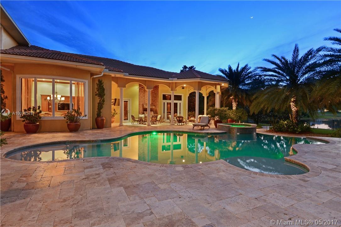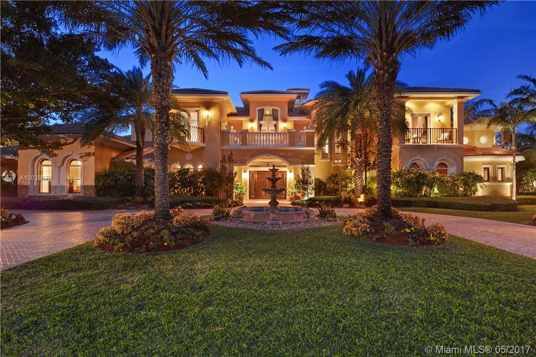 Exquisite custom built two story waterfront home on a private lot with lavish tropical landscaping. Features include an impressive grand foyer entry and formal living room with fireplace, gourmet kitchen, curved glass wine cellar, theater, billiard room, walk-in humidor with cigar / poker room. High end finishes include Venetian plaster walls, faux painted coved and coffered ceilings and custom millwork throughout. Free form infinity edge pool and spa, large patio with outdoor summer kitchen. A must see!
