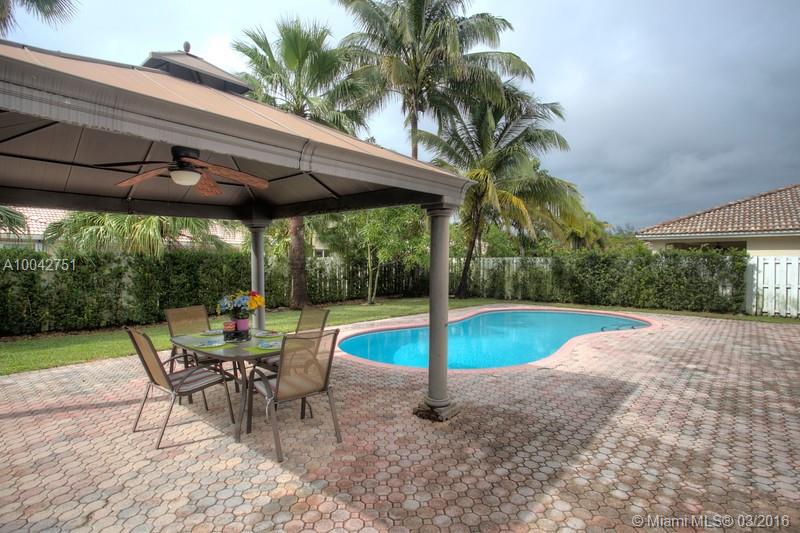 Spacious 4/2 home located in the desirable community of Windsor Palms. This home has a spacious floor plan with volume ceilings and decorator moldings, kitchen w/granite countertops and stainless steel appliances. 2 full baths with granite tops and master bath w/ his and her vanities. Spacious yard w/ heated pool, gazebo powered with electricity to entertain, electric retractable awning, solar panels, accordion shutters and hurricane impact doors. Home also has 2 car garage and separate laundry room.