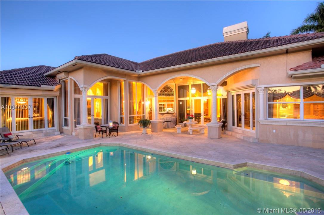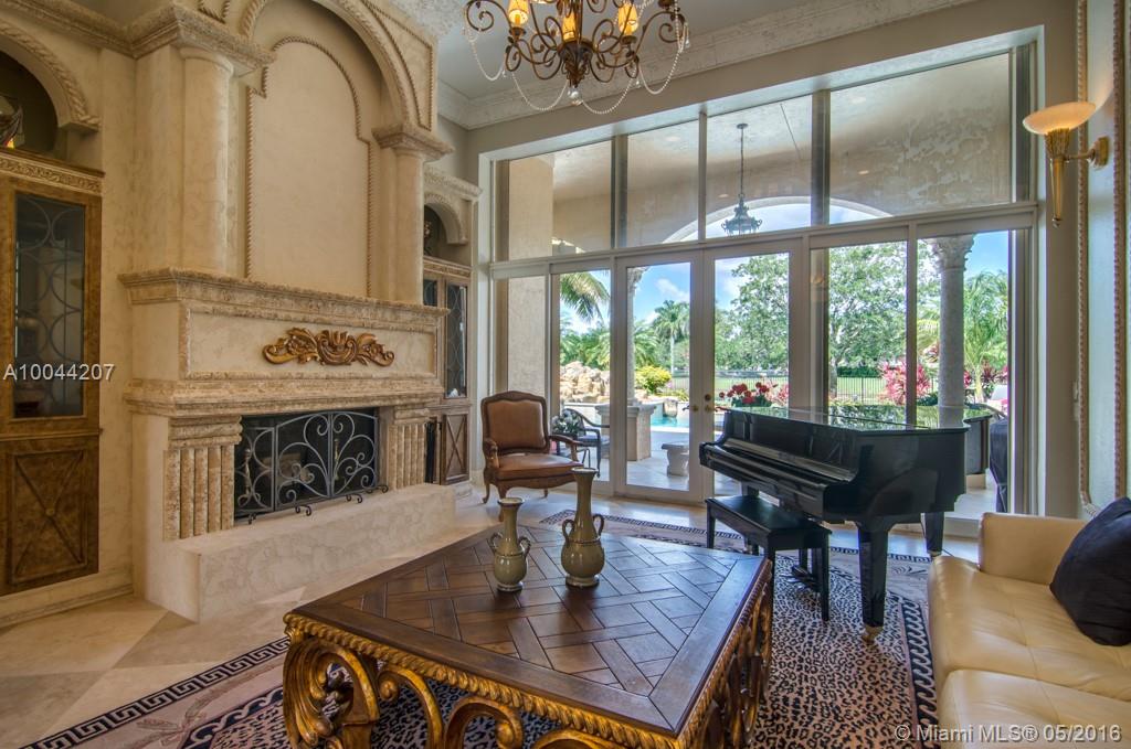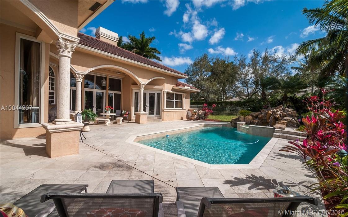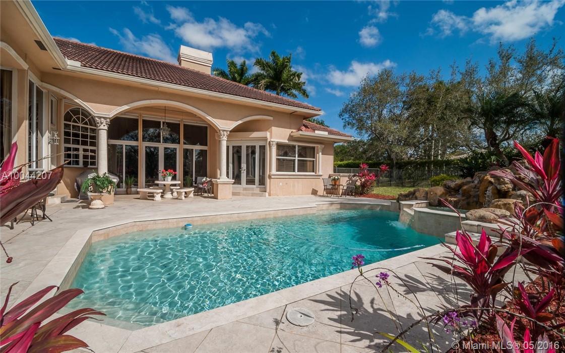 Looking for room to roam. This Elegant acreage custom estate boasts Marble floors,crown moldings,intricate millwork w/ a FRESH coat of Paint. Enter this beauty via long paver drive w/ porte cochere. Grand Liv. Rm w/fireplace/french doors w/pool/lake views.Enjoy 4 en-suite BR's+office & playroom, 4.5 lavish baths. Oversized Corner water lot, fenced with freeform pool/spa/waterfall.Gourmet kitchen w/48"wood cabs, granite,& Stainless. MBR w/sitting area/BA. 4th BR/2nd office complete w/wet bar and built ins