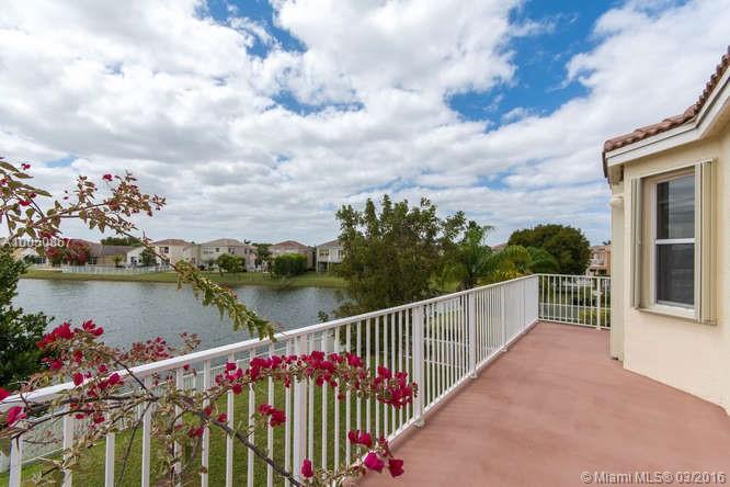 Living in a great resort is the only way to live!This home is located in the much sought after community of Riviera Isles.Popular Aurora 6 Model built on a 225 acre lake!Home has 6 large bedrooms with 3 and a half bathroom, nice and spacious with a gorgeous lake view as you walk in.Well maintained home with upgraded wood kitchen cabinets,recessed lighting throughout,accordion shutters,balcony from master bedroom.Guest suite on the 1st floor & Master suite on the 2nd Floor & much more. This is a must see!!