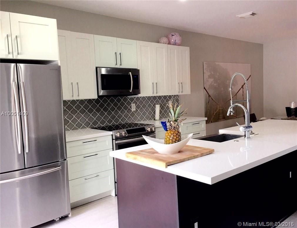 "Beautiful 3/3 Townhome with garage in highly desirable Viscaya Development!" Brand new kitchen featuring European Style Cabinets, Island, stainless steel appliances and beautiful quartz counter tops. Other custom features include brand new hand wrought iron rail on staircase. New 12X24 tiles first floor; freshly painted first floor; high volume 16' ceilings on first floor. Owner transferred.