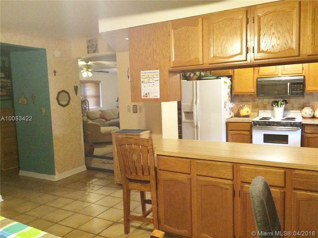 Spacious home, 3 BR’s all w/large closets, 2 full bath, spacious kitchen w/lots of cupboards & countertop space, pass thru to large dining room. Large Master BR has full bath & large walk in closet. Spacious living room w/entrance into large 1 car Garage w/laundry area, huge back yard, 30x15 enclosed patio with impact windows & screens, beautiful tile floor, w/French doors leading into home. Accordion hurricane shutters, Newer Roof, A/C, hot water heater. Master bath is not a combination Tub/Bath