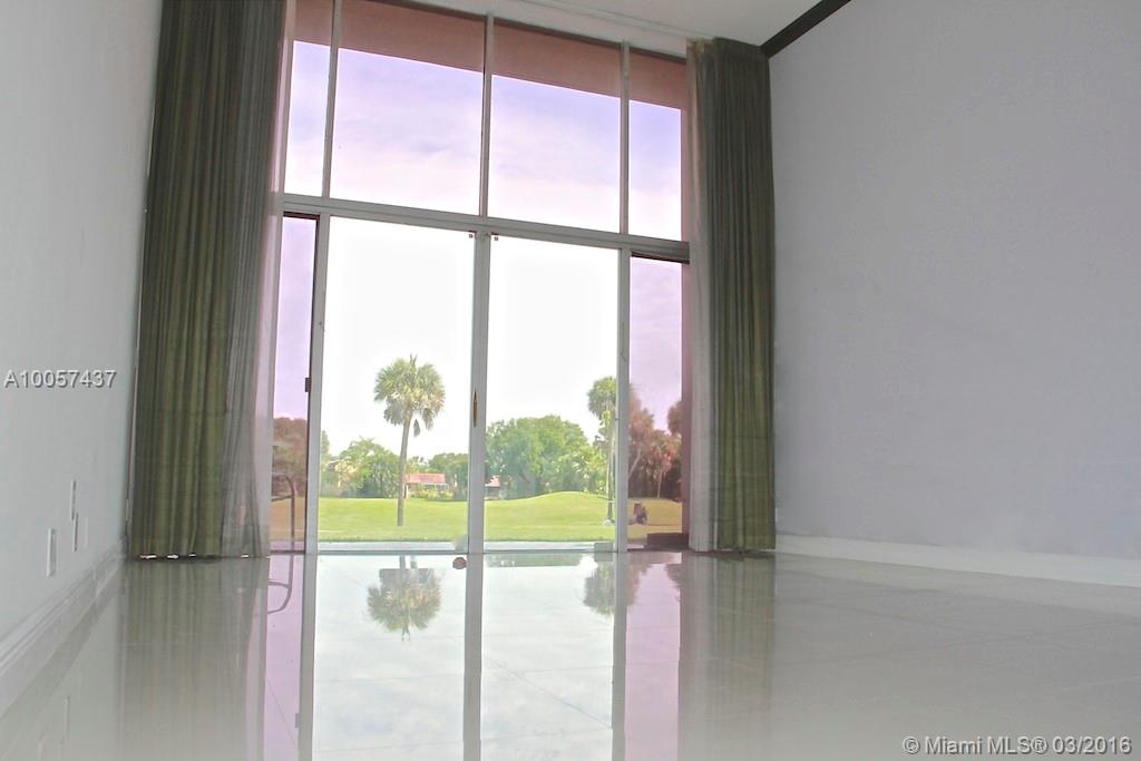 Stunning town home with unending views of the Country Club of Miami Golf Course and Lakes. Living Room boasts extremely large windows overlooking the course with 18 ft. floor to ceiling windows. Elevated Formal Dining Room with galley kitchen. Both bedrooms are very spacious. Master Bedroom has panoramic views of golf course. Home has tons of natural light. This home has an abundance of potential.