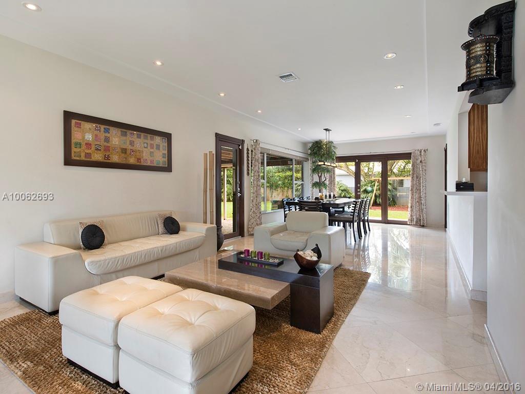 Stylishly renovated home radiates modern elegance! Upscale finishes and flowing spaces makes this East of Biscayne gem the perfect retreat. An impeccably landscaped circular driveway leads to a chic, modern entryway. Recessed lighting and marble tile provide and airy feel. Living areas open to a huge covered patio ideal for indoor/outdoor entertaining. Bedrooms are bright & sizable. Sleekly updated 3 baths. Stylish open kitchen w/ high end appl & custom cabinets. 2-car garage. Large lot in prime location.