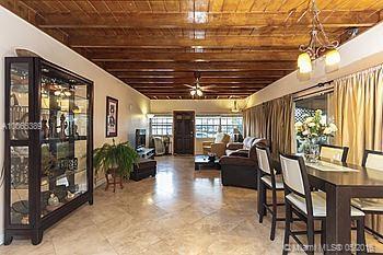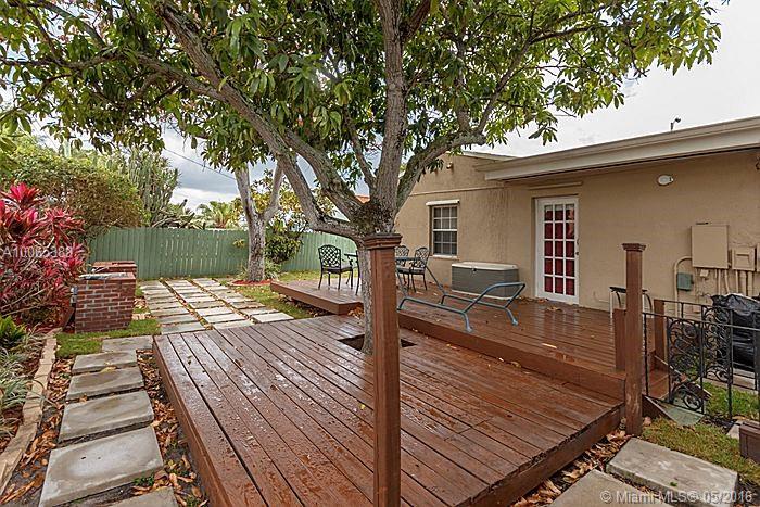 This is a well maintained and renovated 4/3 home w/ Travertine flooring throughout the living areas with carpeting in the bedrooms. The kitchen has granite countertops, large cabinets and stainless steel appliances w/ a breakfast bar and informal dining area. There is a large fenced in and landscaped yard excellent for families and entertaining. The backyard has a large wooden deck with adjacent brick BBQ and wash sink & a screened in patio for further entertaining and use. Walking distance to beach.