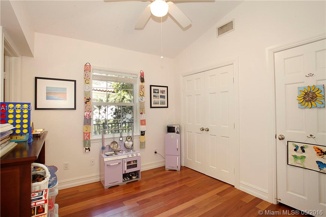 Completely renovated in 02, this home is ideally located in the Sunset school district. The stately entrance features wood beamed ceilings & leads to spacious formal living & dining areas. The kitchen is open to the sunny family room: a rare layout in the Gables! French doors from the fam & din rooms open onto the deep covered porch & lovely pool, giving you indoor/outdoor living options. Also overlooking the pool is the grand master w/ dressing area & beautiful bath. All of this on a gated corner lot.