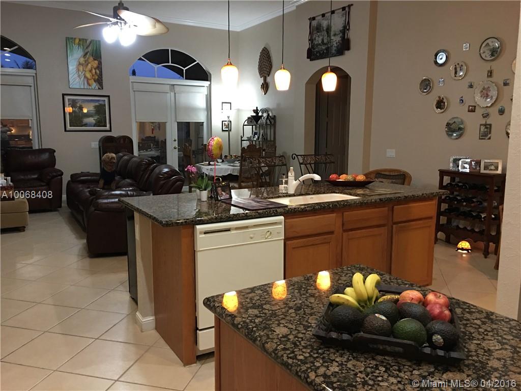 Grand Foyer Entrance Leading to Pure Elegance. This dream home boasts high ceilings through out giving it even a bigger feel than the size it already has. Formal Dining Living Rooms have dark wood flooring, the rest has Neutral Colored Tiles throughout. Granite kitchen counter tops w/real wood cabinets. Snack bar & Kitchen adjacent to huge Family Room which overlooks the breathtaking lake view. Definitely what South Florida Living is all About. This is Truly a Walk In and Fall In Love Property